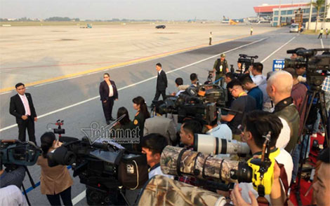 Các phóng viên được sắp xếp vị trí để tác nghiệp ở sân bay Nội Bài