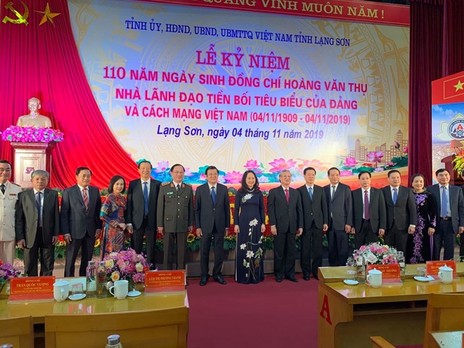Ngày 4-11, Tỉnh ủy, HĐND, UBND, Ủy ban Mặt trận Tổ quốc Việt Nam tỉnh Lạng Sơn long trọng tổ chức Lễ kỷ niệm 110 năm ngày sinh đồng chí Hoàng Văn Thụ - Nhà lãnh đạo tiền bối tiêu biểu của Đảng và cách mạng Việt Nam (4/11/1909 – 4/11/2019).