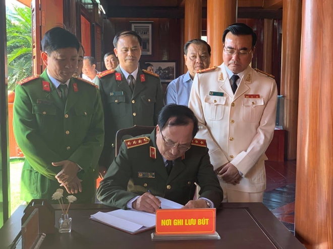 | Sau Lễ kỷ niệm, Thứ trưởng Nguyễn Văn Thành và đoàn Bộ Công an tới dâng hương, tham quan và ghi lưu bút tại khu lưu niệm cụ Hoàng Văn Thụ (huyện Văn Lãng, Lạng Sơn). |