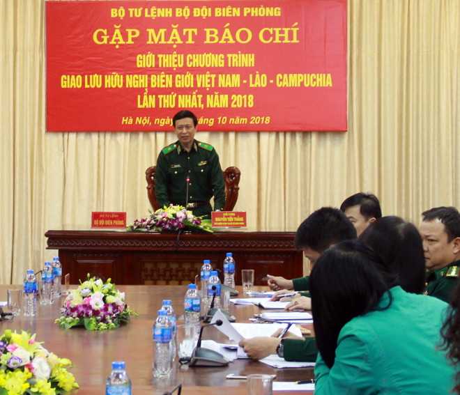 | Thiếu tướng Nguyễn Tiến Thắng, Chủ nhiệm Chính trị BĐBP chủ buổi Gặp mặt báo chí giới thiệu chương trình Giao lưu. |