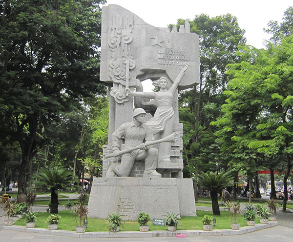 | Tượng đài “Quyết tử để Tổ quốc quyết sinh” tại vườn hoa Vạn Xuân. |