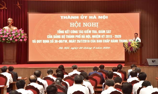 Sáng 22/9, Ban Thường vụ Thành ủy Hà Nội tổ chức hội nghị tổng kết công tác kiểm tra, giám sát của Đảng bộ TP nhiệm kỳ 2015 - 2020 và việc thực hiện Quy định số 30-QĐ/TƯ ngày 26/7/2016 của Ban Chấp hành Trung ương Đảng về “Thi hành chương VII, chương VIII Điều lệ Đảng về công tác kiểm tra, giám sát, kỷ luật của Đảng”.