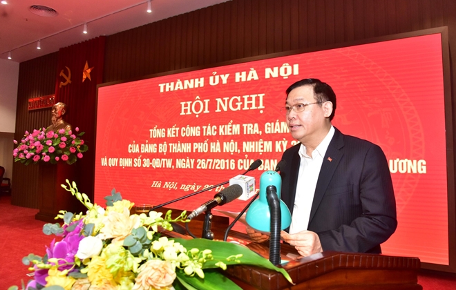 Kết luận hội nghị, Bí thư Thành ủy Hà Nội Vương Đình Huệ chỉ rõ, kết quả đó có sự đóng góp hết sức quan trọng của cấp ủy, Ủy ban Kiểm tra các cấp TP Hà Nội thông qua công tác kiểm tra, giám sát Đảng. Đóng góp gần nhất, rõ nhất của công tác kiểm tra, giám sát là thành công của đại hội 50 đảng bộ cấp trên cơ sở, 2.310 tổ chức cơ sở Đảng và 17.118 chi bộ trực thuộc đảng bộ cơ sở.