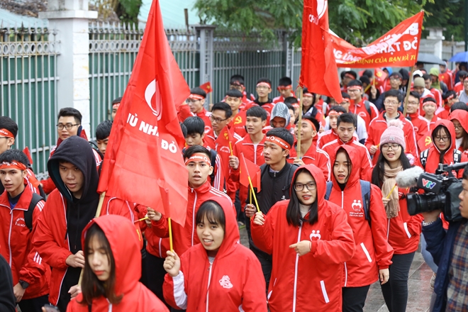 | Phó Thủ tướng Thường trực Trương Hoà Bình cùng các đại biểu diễu hành, vận động người dân tham gia hiến máu cứu người. Ảnh: VGP/Lê Sơn |