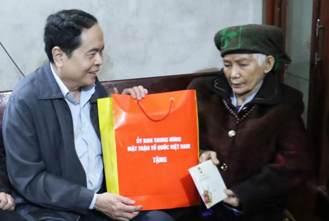 | Chủ tịch Trần Thanh Mẫn thăm hỏi, chúc Tết, tặng quà Mẹ Nguyễn Thị Lợi ( mẹ liệt sĩ Hoàng Quốc Việt). |