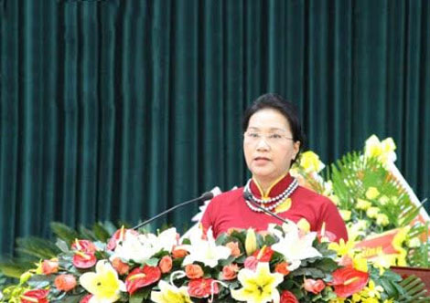 | Đồng chí Nguyễn Thị Kim Ngân phát biểu chỉ đạo tại Đại hội. |