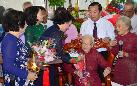 Chủ tịch Quốc hội Nguyễn Thị Kim Ngân cùng các đại biểu chúc mừng Đại thọ bà Ngô Thị Huệ, Phu nhân cố Tổng Bí thư Nguyễn Văn Linh.