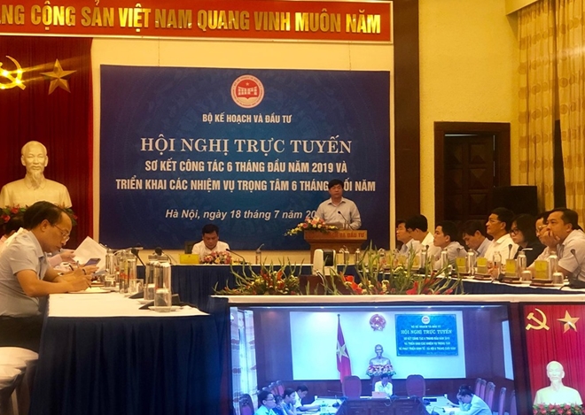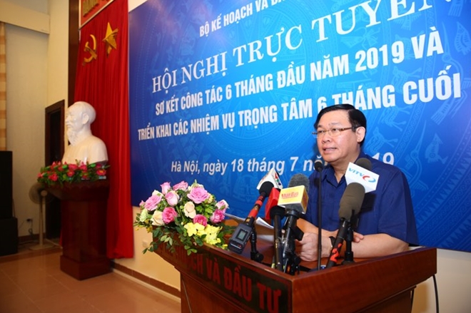 Ngày 18-7, tại Hà Nội, Bộ Kế hoạch và Đầu tư ( KH&ĐT) tổ chức Hội nghị trực tuyến công tác 6 tháng đầu năm 2019 và triển khai nhiệm vụ trọng tâm 6 tháng cuối năm. Ủy viên Bộ Chính trị, Phó Thủ tướng Chính phủ Vương Đình Huệ tham dự và phát biểu tại Hội nghị.