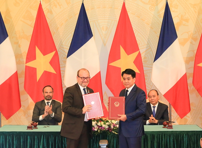Trong khuôn khổ chuyến thăm chính thức đến Việt Nam của Thủ tướng Pháp Édouard Philippe, tối 2-11, Thủ tướng Chính phủ Nguyễn Xuân Phúc và Thủ tướng Pháp Édouard Philippe đã chứng kiến Lễ ký, trao đổi các văn kiện, thỏa thuận hợp tác giữa hai nước trên nhiều lĩnh vực trong đó có đào tạo, phát triển chính phủ điện tử, hợp tác y tế, ứng phó với biến đổi khí hậu, bảo vệ môi trường, không gian, quản lý đô thị, cung cấp máy bay chở khách Airbus, năng lượng. Sau Lễ ký kết, Thủ tướng Nguyễn Xuân Phúc đã chủ trì tiệc chiêu đãi Thủ tướng Pháp Édouard Philippe và đoàn đại biểu cấp cao Pháp.