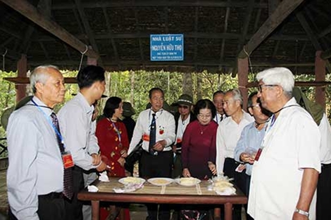 | Các đại biểu thăm nhà làm việc của luật sư Nguyễn Hữu Thọ, nguyên Chủ tịch Mặt trận Dân tộc Giải phóng miền Nam Việt Nam tại căn cứ. |