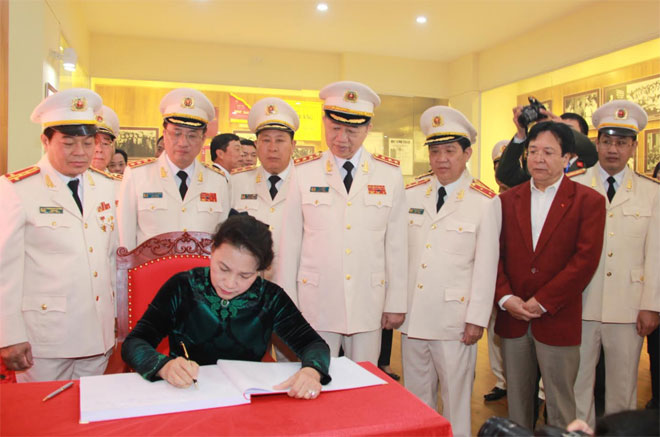 | Chủ tịch Quốc hội Nguyễn Thị Kim Ngân viết lưu niệm tại Nhà truyền thống khu lưu niệm Sáu điều Bác Hồ dạy CAND. |