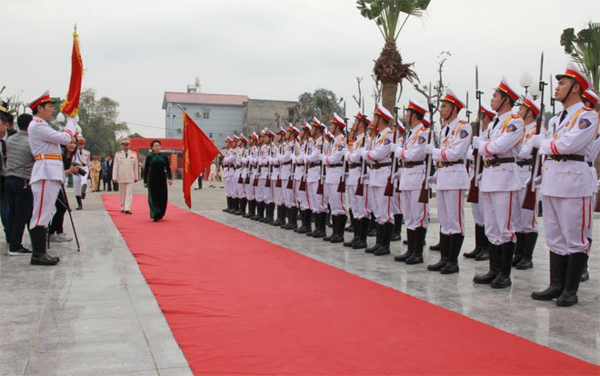| Chủ tịch Quốc hội Nguyễn Thị Kim Ngân duyệt đội danh dự CAND. |
