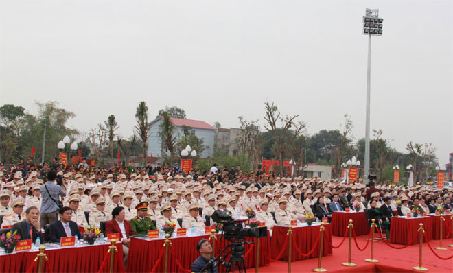 Đồng chí Bùi Văn Hải, Bí thư Tỉnh uỷ tỉnh Bắc Giang khẳng định, suốt mấy chục năm qua, dù khó khăn, gian khổ nhưng Đảng bộ, chính quyền và nhân dân Bắc Giang luôn cố gắng làm theo di huấn của Bác và đạt nhiều kết quả, kinh tế không ngừng phát triển; đời sống của nhân dân không ngừng nâng cao; CBCS Công an luôn trau dồi, học tập theo tấm gương, đạo đức, phong cách của Bác, làm tốt công tác bảo vệ an ninh, trật tự, phục vụ phát triển kinh tế ở địa phương. Thay mặt chính quyền, nhân dân tỉnh Bắc Giang, đồng chí Bùi Văn Hải hứa với Bác, với đồng chí Chủ tịch Quốc hội sẽ tiếp tục lãnh đạo Đảng bộ, nhân dân tỉnh Bắc Giang quyết tâm cao hơn trong thực hiện di huấn của bác và các chủ trương, chính sách của Đảng, Nhà nước, xây dựng đảng bộ, chính quyền địa phương vững mạnh. Công an Bắc Giang tiên phong đi đầu trong thực hiện Sáu điều Bác dạy, xứng đáng là nơi Bác Hồ có 6 lời dạy CAND.