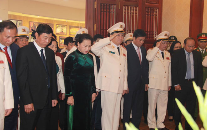 | Chủ tịch Quốc hội Nguyễn Thị Kim Ngân; Bộ trưởng Bộ Công an Tô Lâm với các đại biểu dâng hương tưởng niệm Bác Hồ. |