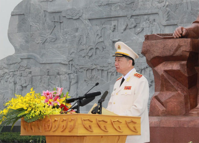 | Thượng tướng Tô Lâm, Bộ trưởng Bộ Công an trình bày diễn văn tại Lễ kỷ niệm. |