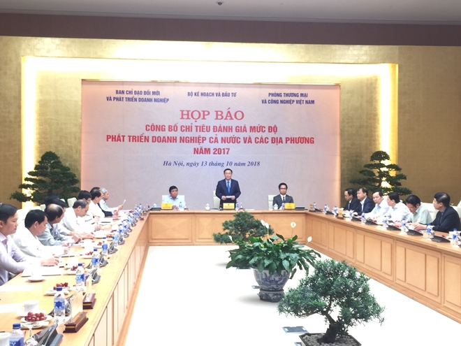 Đó là phát biểu của Phó Thủ tướng Vương Đình Huệ tại họp báo công bố chỉ số phát triển doanh nghiệp cả nước và các địa phương năm 2017 diễn ra ngày 13-10 tại Hà Nội. Đây cũng là lần đầu tiên Bộ Kế hoạch à Đầu tư phối với Phòng Thương mại và Công nghiệp Việt Nam, Ban chỉ đạo đổi mới và phát triển doanh nghiệp công bố chỉ tiêu phát triển doanh nghiệp.