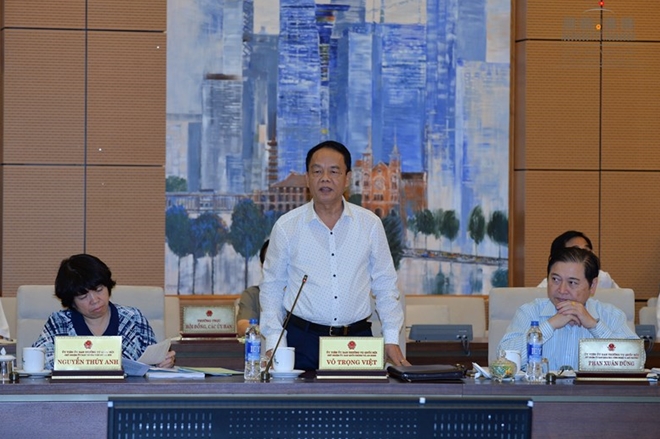 Chủ nhiệm Uỷ ban Quốc phòng và An ninh (UBQPAN) Võ Trọng Việt trình bày báo cáo. Theo đó, về nghiên cứu, chế tạo, sản xuất, kinh doanh, sửa chữa, xuất khẩu, nhập khẩu vũ khí (Điều 15), Dự thảo Luật Chính phủ trình Quốc hội tại kỳ họp thứ 2 đề xuất 2 phương án: