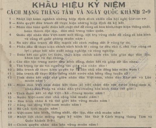 | Khẩu hiệu kỷ niệm ngày Quốc khánh 2-9 trên báo Nhân dân năm 1954 |