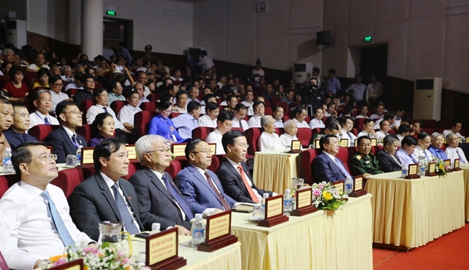 | Các đồng chí lãnh đạo Đảng, Nhà nước, tỉnh Hà Tĩnh và đông đảo nhân dân tham dự buổi lễ. |