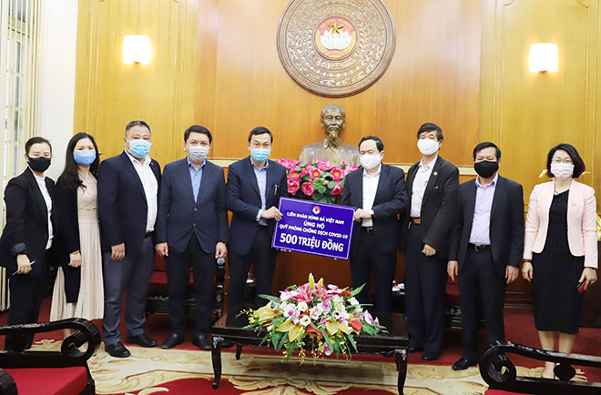 | Phó Chủ tịch UBTƯ MTTQ Việt Nam Trương Thị Ngọc Ánh tiếp nhận ủng hộ từ Lớp vẽ HD - Văn phú, Hà Đông. |