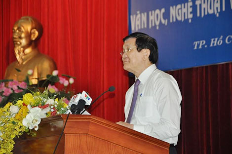 Chủ tịch nước Trương Tấn Sang đã đến dự và có bài phát biểu quan trọng tại Hội thảo khoa học toàn quốc chủ đề “Văn học, nghệ thuật với việc xây dựng nhân cách con người Việt Nam” tại TP HCM.