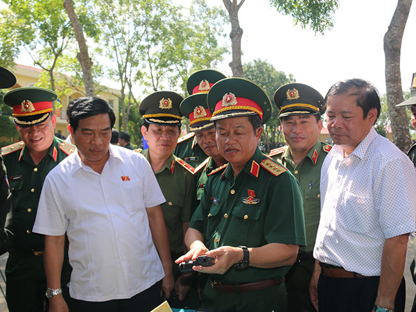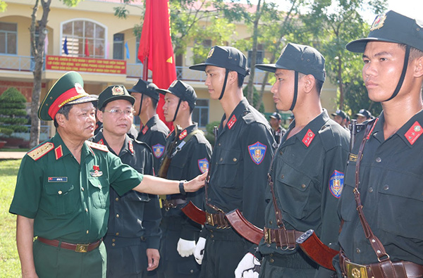 | Phó Chủ tịch Quốc hội Đỗ Bá Tỵ kiểm tra một số loại vũ khí trang bị cho Trung đoàn CSCĐ Tây Nam Bộ. |