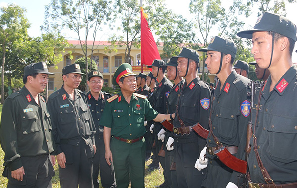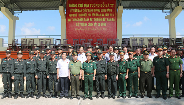 | Phó Chủ tịch Quốc hội Đỗ Bá Tỵ cùng đoàn công tác và Ban chỉ huy Trung đoàn CSCĐ Tây Nam Bộ. |