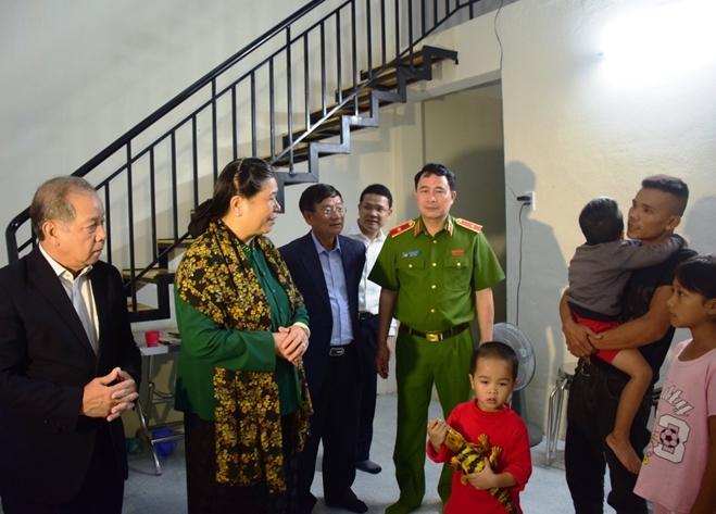 | Phó Chủ tịch Thường trực Quốc hội Tòng Thị Phóng, Thứ trưởng Lê Quốc Hùng thăm các gia đình tại khu tái định cư Hương Sơ, TP Huế. |