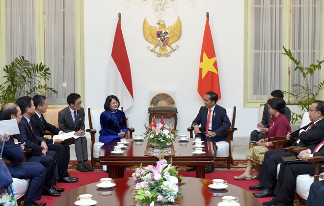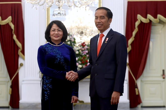 | Phó Chủ tịch nước Đặng Thị Ngọc Thịnh và Tổng thống Indonesia Joko Widodo. |
