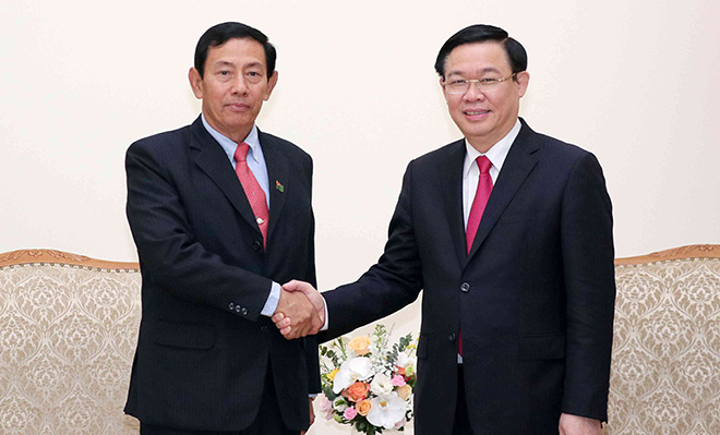 | Phó Thủ tướng Vương Đình Huệ tiếp Chủ tịch Đảng Đoàn kết và Phát triển Liên bang Myanmar. Ảnh: VGP/Thành Chung |