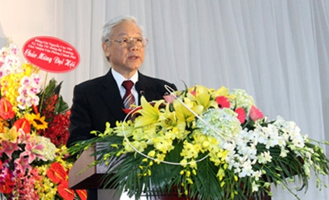 | Tổng Bí thư Nguyễn Phú Trọng tại Đại hội lần thứ IX Liên hiệp các Hội văn học nghệ thuật Việt Nam. |