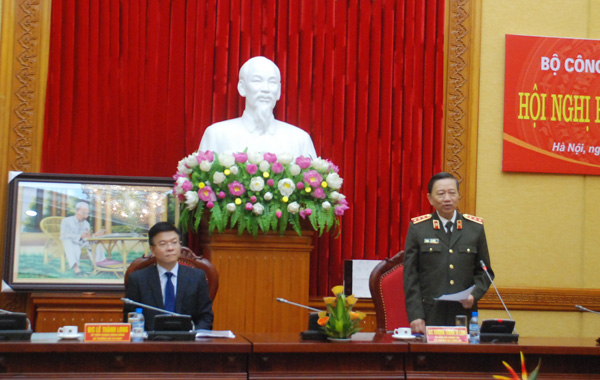 | Bộ trưởng Tô Lâm phát biểu tại hội nghị. |
