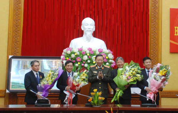 | Bộ trưởng Lê Thành Long trao Kỷ niệm chương cho lãnh đạo, nguyên lãnh đạo Bộ Công an. |