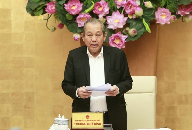| Phó Thủ tướng Thường trực Trương Hoà Bình phát biểu tại cuộc họp |