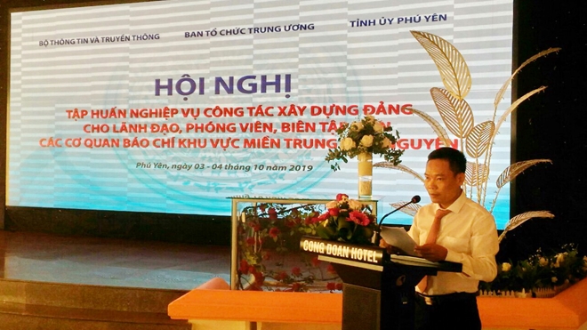 Tại TP Tuy Hòa ngày 3-10, Bộ Thông tin và Truyền thông phối hợp Ban Tổ chức Trung ương, Tỉnh ủy Phú Yên tổ chức Hội nghị tập huấn nghiệp vụ công tác xây dựng Đảng cho hơn 50 cán bộ lãnh đạo, phóng viên, biên tập viên của 18 cơ quan báo chí, phát thanh, truyền hình khu vực miền Trung – Tây Nguyên.