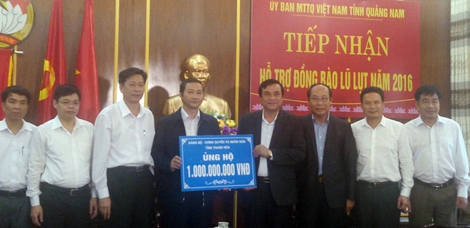 | Thanh Hóa hỗ trợ địa phương kết nghĩa Quảng Nam 1 tỷ đồng nhằm sớm khắc phục hậu quả mưa lũ. |