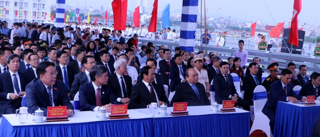 Phát biểu tại buổi Lễ, Thủ tướng Chính phủ Nguyễn Xuân Phúc bày tỏ phấn khởi trước sự thay đổi, phát triển nhanh chóng của thành phố Hải Phòng trong thời gian gần đây, không chỉ tăng trưởng kinh tế và các hoạt xã hội, đời sống nhân dân được nâng cao mà khí thế phát triển của thành phố rất đáng mừng, khẳng định sự vươn lên mạnh mẽ để thực hiện hiệu quả Nghị quyết 45 của Bộ Chính trị.
