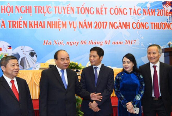 Sáng 6-1, tại Hà Nội, Thủ tướng Nguyễn Xuân Phúc đã dự Hội nghị trực tuyến tổng kết công tác năm 2016 và triển khai nhiệm vụ năm 2017 ngành công thương.