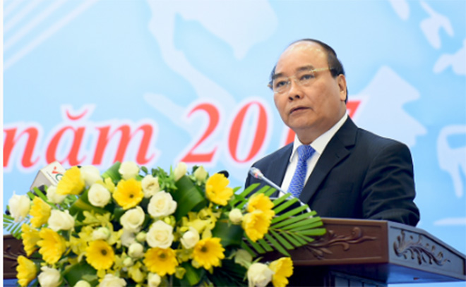 Nhìn lại năm 2016, Thủ tướng cho rằng, đây là năm đầy khó khăn, sóng gió với nhiều thiên tai, nhân tai và những biến động rất lớn của thị trường quốc tế. Trong bối cảnh như vậy, nhưng chúng ta đã vượt qua với 12 chỉ tiêu vượt mức và 2 chỉ tiêu xấp xỉ đạt.