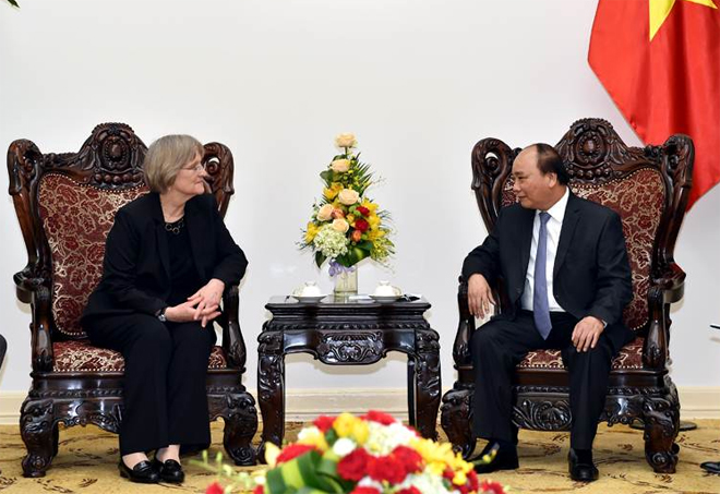 | Thủ tướng Nguyễn Xuân Phúc tiếp bà Drew Gilpin Faust, Hiệu trưởng ĐH Harvard. Ảnh: VGP/ Nhật Bắc |