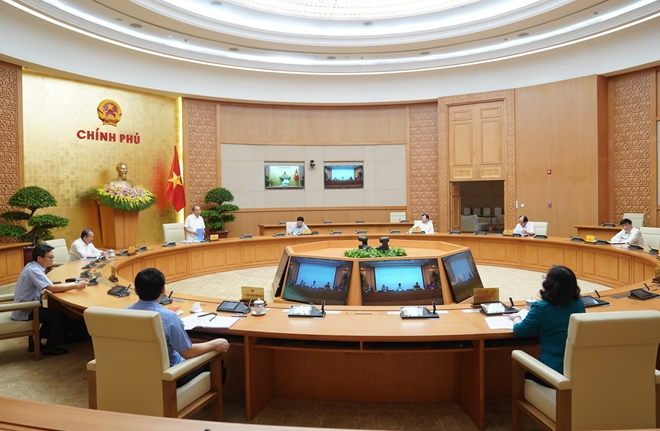 | Thủ tướng Nguyễn Xuân Phúc chủ trì cuộc họp nghe Ban Chỉ đạo quốc gia báo cáo tình hình dịch COVID-19 và các biện pháp mới. Ảnh: VGP/Quang Hiếu |
