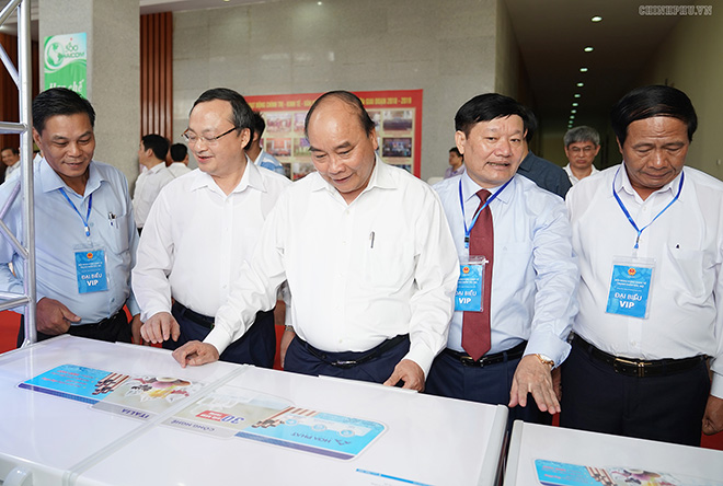 | Thủ tướng và các đại biểu tham quan khu trưng bày các sản phẩm đặc trưng của khu vực Bắc Bộ. Ảnh VGP/Quang Hiếu |