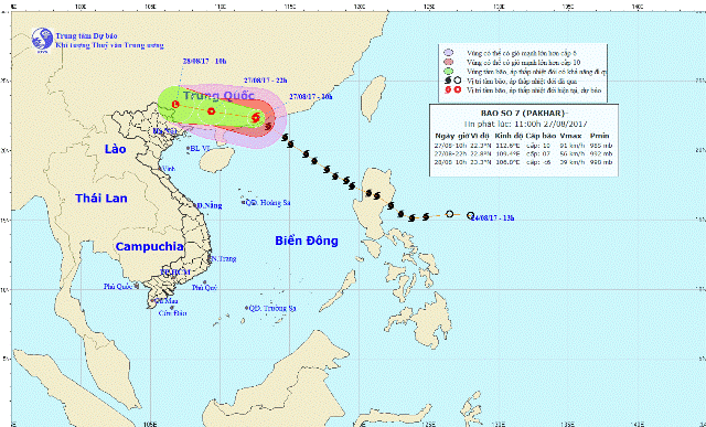 Trong khi đó, ngày 27-8, bão số 7 đã đổ bộ vào tỉnh Quảng Đông (Trung Quốc). Trung tâm Dự báo khí tượng thủy văn Trung ương cho hay, do ảnh hưởng của hoàn lưu vùng áp thấp suy yếu từ cơn bão số 7, sau đó hình thành một rãnh áp thấp qua Bắc Bộ nên từ gần sáng 28-8 đến hết ngày 31-8 ở Bắc bộ có mưa diện rộng; khu vực Tây Bắc và Việt Bắc mưa vừa, mưa to (tổng lượng mưa phổ biến 100-150mm/đợt, có nơi trên 200mm). Khu vực các tỉnh Bắc Trung Bộ từ ngày 29 đến 31-8 có mưa, có nơi mưa vừa, mưa to. Các tỉnh vùng núi phía Bắc cần đề phòng sạt lở, đặc biệt tại lưu vực các sông Thao, sông Lô, sông Chảy.