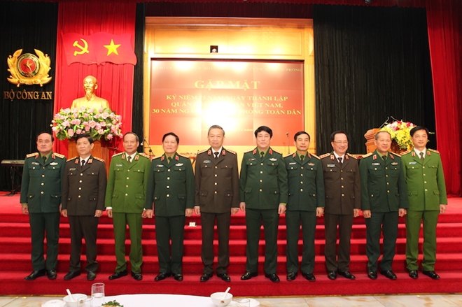 Phát biểu chúc mừng 75 năm Ngày truyền thống QĐND Việt Nam, 30 năm Ngày hội Quốc phòng toàn dân, Bộ trưởng Tô Lâm khẳng định, trải qua các thời kỳ cách mạng, dưới sự lãnh đạo của Đảng, nhà nước, thấm nhuần sâu sắc lời dạy của Chủ tịch Hồ Chí Minh kính yêu: “Công an và Quân đội là hai cánh tay của nhân dân, của Đảng, của Chính phủ, của chuyên chính vô sản. Vì vậy càng phải đoàn kết chặt chẽ với nhau, giúp đỡ lẫn nhau”, lực lượng CAND và QĐND luôn chung sức, đồng lòng, đồng tâm hiệp lực, đoàn kết, phối hợp, hiệp đồng chặt chẽ, hoàn thành xuất sắc mọi nhiệm vụ mà Đảng, Nhà nước và nhân dân tin cậy giao phó.