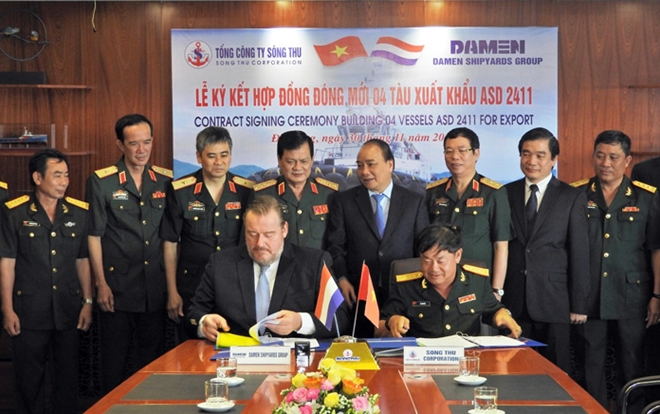 Sau khi hạ thủy tàu CSB 8005, Phó Thủ tướng Nguyễn Xuân Phúc đã chứng kiến lễ ký kết đóng mới 4 tàu ASD2411 xuất khẩu sang châu Âu giữa Tổng Công ty Sông Thu và Tập đoàn Damen.