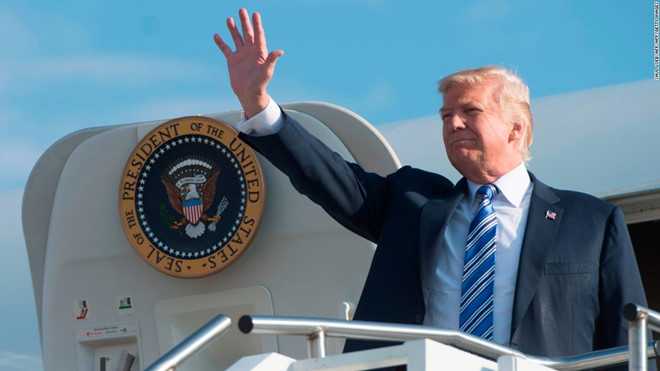 | Tổng thống Trump vẫy chào từ chuyên cơ Air Force One. Ảnh: Getty. |