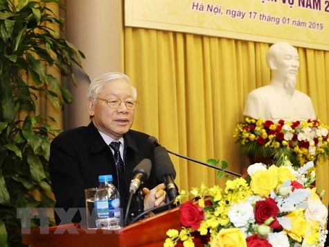 Tổng Bí thư, Chủ tịch nước nhiệt liệt chúc mừng, biểu dương và cảm ơn cán bộ, công chức, người lao động cơ quan Văn phòng về những kết quả đạt được trong công tác thời gian qua; đồng thời lưu ý, đất nước còn nhiều khó khăn, tuyệt đối không được chủ quan. Năm 2019 có nhiều ý nghĩa, kỷ niệm 50 năm thực hiện Di chúc của Bác Hồ, 89 năm Ngày thành lập Đảng, chuẩn bị Đại hội XIII của Đảng. Tình hình thế giới diễn biến phức tạp khó lường, thời tiết, biến đổi khí hậu tác động bất lợi đến đời sống và sự phát triển kinh tế- xã hội của đất nước…