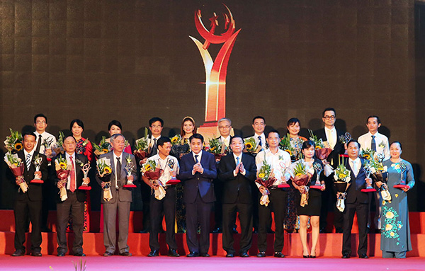 | Phó Thủ tướng Chính phủ Vũ Đức Đam trao cho 2 doanh nghiệp đoạt giải. Ảnh Đình Nam. |