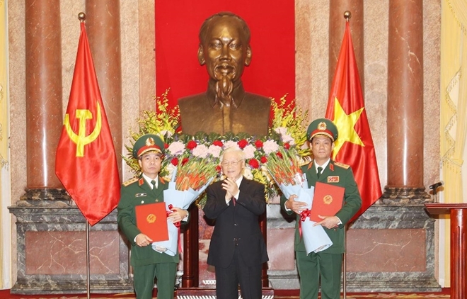 Tổng Bí thư, Chủ tịch nước Nguyễn Phú Trọng chúc mừng hai sỹ quan được thăng quân hàm, coi đây là sự ghi nhận, đánh giá cao những đóng góp quan trọng của mỗi đồng chí đối với sự nghiệp xây dựng và phát triển Quân đội cũng như sự nghiệp xây dựng và bảo vệ Tổ quốc, đồng thời thể hiện sự tin tưởng, quan tâm sâu sắc của Đảng, Nhà nước và nhân dân đối với lực lượng vũ trang nhân dân Việt Nam.