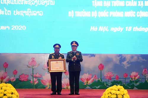 Bộ trưởng Ngô Xuân Lịch nhấn mạnh: Đó là sự ghi nhận của Đảng, Nhà nước, Bộ Quốc phòng và nhân dân Việt Nam đối với công lao to lớn, thành tích xuất sắc của đồng chí trong việc củng cố, tăng cường mối quan hệ hữu nghị vĩ đại, đoàn kết đặc biệt và hợp tác toàn diện Việt Nam - Lào.